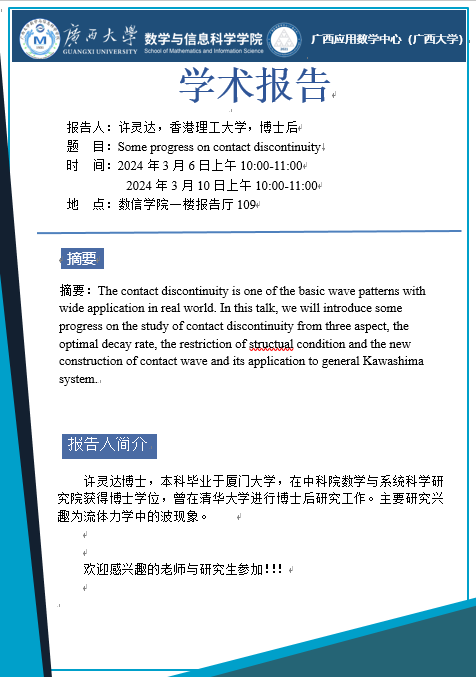 学术报告:Some progress on contact discontinuity