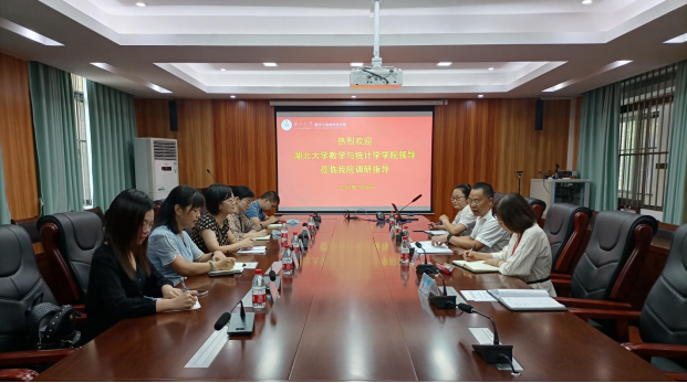 2022年7月4日上午,湖北大学数学与统计学学院党委书记周霞、党委副书记何肖,湖北大学党委组织部副部长、机关党委副书记黄江英、党委组织部组织科科长马兴建、党委组织部干部科干部陈秋瑞一行5人莅临新葡萄88805官网新葡萄88805官网调研指导工作。学院党委书记黄建荣等领导班子成员参加了调研交流会。
