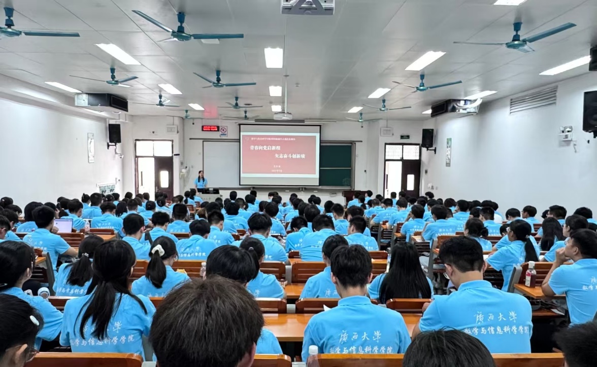 9月19日上午,学院党委书记吴华丽以“青春向党启新程,矢志奋斗创新绩”为题,为新葡萄官网2025级全体新生带来了一堂生动、深刻的入党启发教育课。