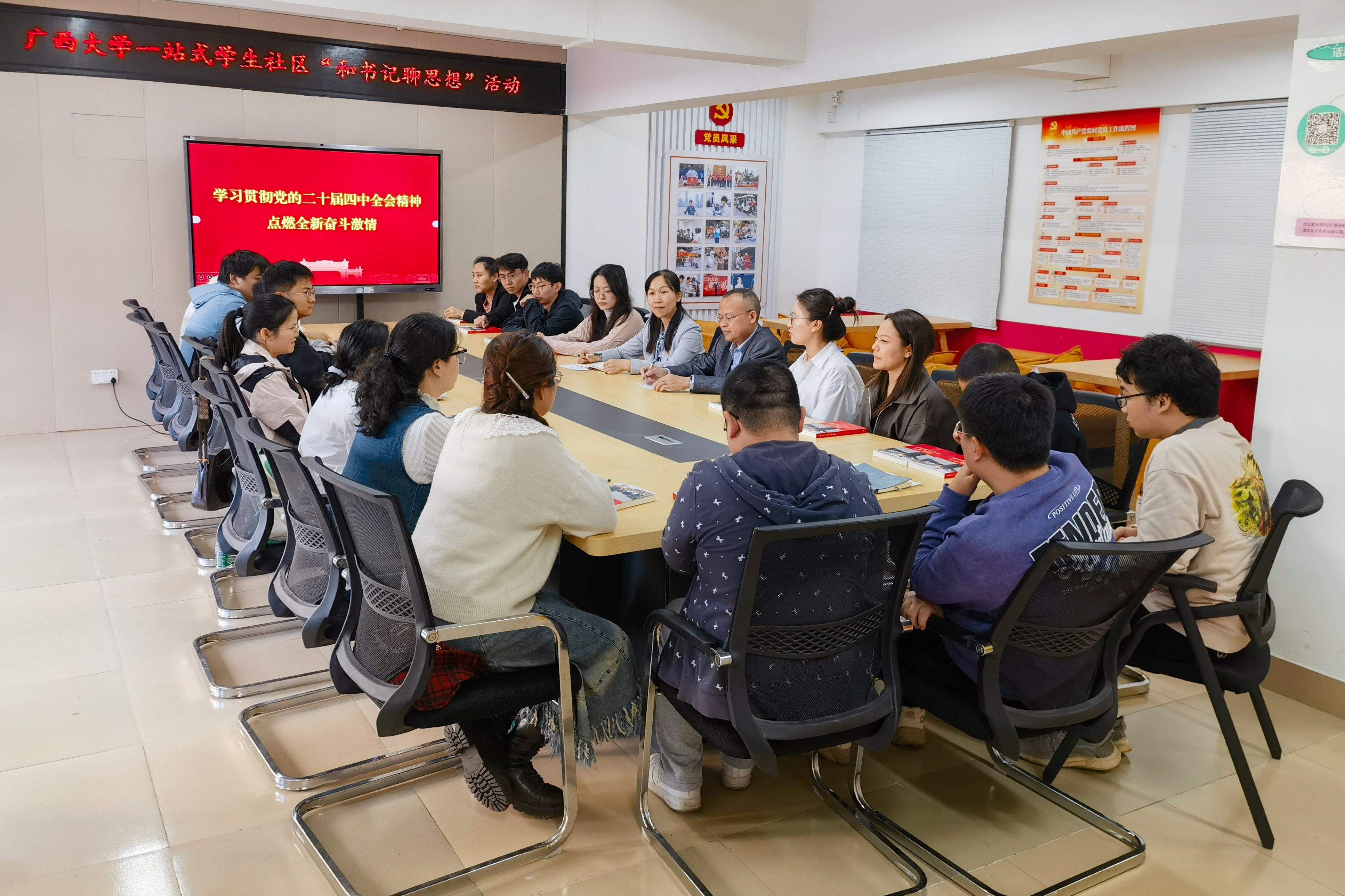 为深入学习贯彻党的二十届四中全会精神,激励新葡萄官网博士生潜心科研、奋发进取、挺膺担当,11月12日下午,院党委书记吴华丽在西21栋学生一站式社区与新葡萄官网18名博士生代表共同学习党的二十届四中全会精神,并进行座谈交流。院党委副书记、纪委书记石志刚主持座谈会。座谈会前,吴华丽向与会同学一一赠送了《习近平与大学生朋友们》。