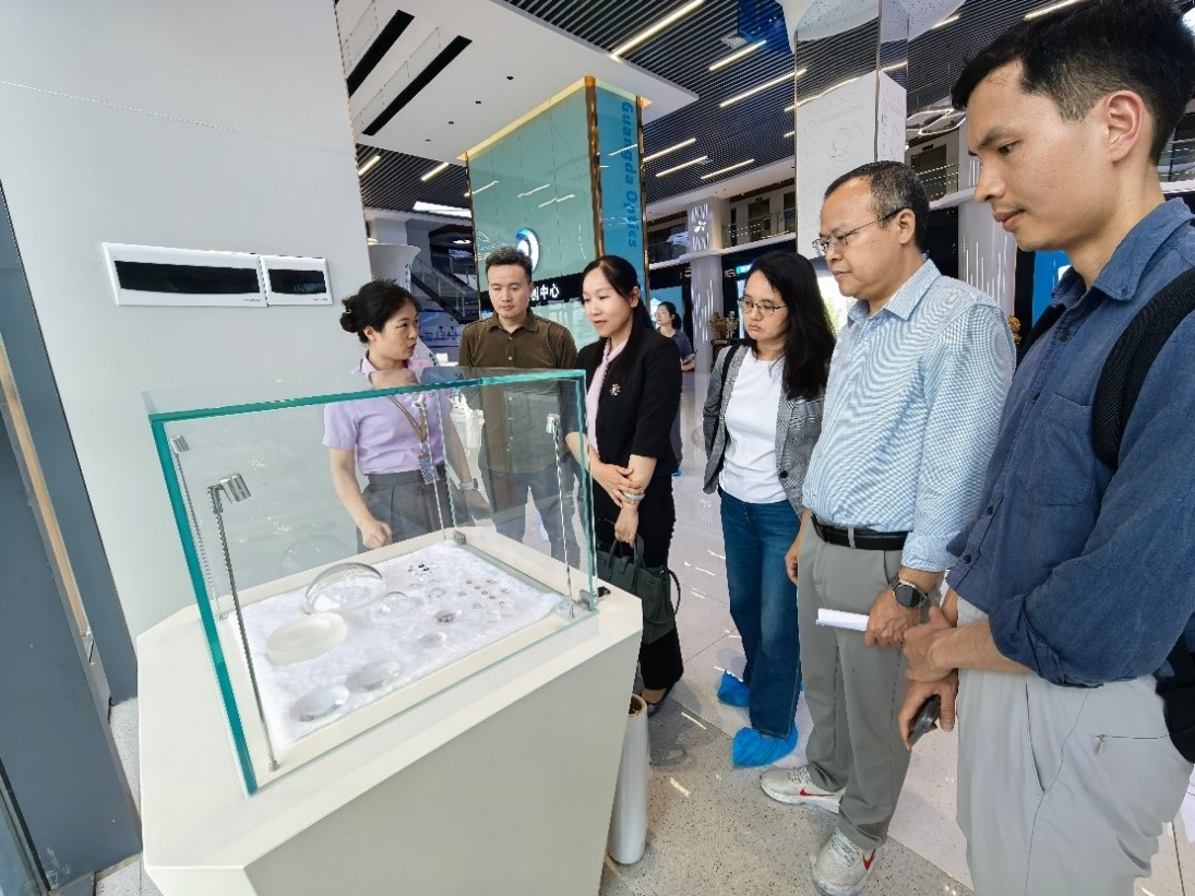座谈中,吴华丽详细介绍了新葡萄官网专业设置情况和学科建设、人才培养工作取得的成效,并就毕业生就业、校企产学研合作中遇到的问题和困难与企业展开探讨交流。中山市光大光学仪器有限公司董事长助理吴秋娟带领调研组参观了企业的生产线和科创产品展厅,详细介绍了企业的人才需求和校企联合培养模式。中山联合光电科技股份有限公司董事长龚俊强向调研组介绍了企业的发展历程和人才需求情况,希望与新葡萄官网在算法人才培养上有进一步合作,并就校企合作,精准培养企业所需人才提出了具体建议。